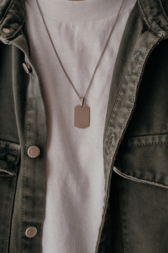 Notre chaîne The Military est un classique pour homme avec sa plaque de type militaire.